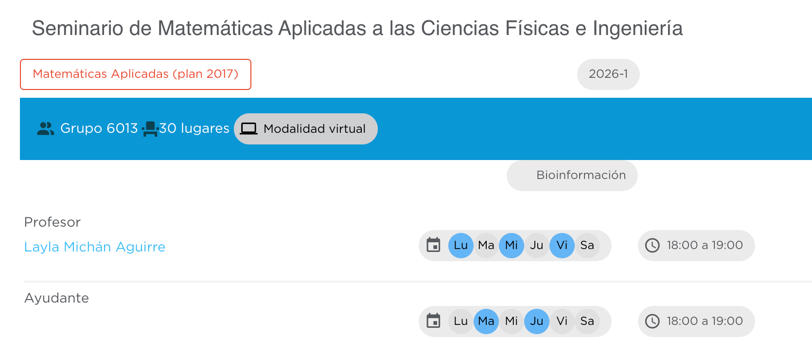 Todos los inscritos recibirán una carpeta con información sobre las herramientas del curso, iniciamos el lunes 11 a las 18:00 por JitsiSeminario de Matemáticas Aplicadas a las Ciencias Físicas e Ingeniería: Bioinformación